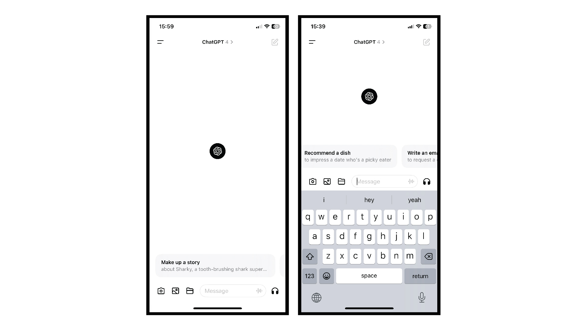 The ChatGPT design excels at incorporating micro-interactions to make the experience more intuitive and engaging for users. My personal favorite appears at the beginning of the onboarding flow; the user is greeted with changing phrases like “let’s explore,” “let’s create,” and “let’s design,” and while the words appear and disappear, the phone subtly buzzes to the rhythm of the letters. This small interaction brought a big smile to my face. It immediately engages the user, bringing their experience of the app out of the digital and into the physical realm. Additionally, it ensures that the user remains interested in the screen long enough to move on to the next step.