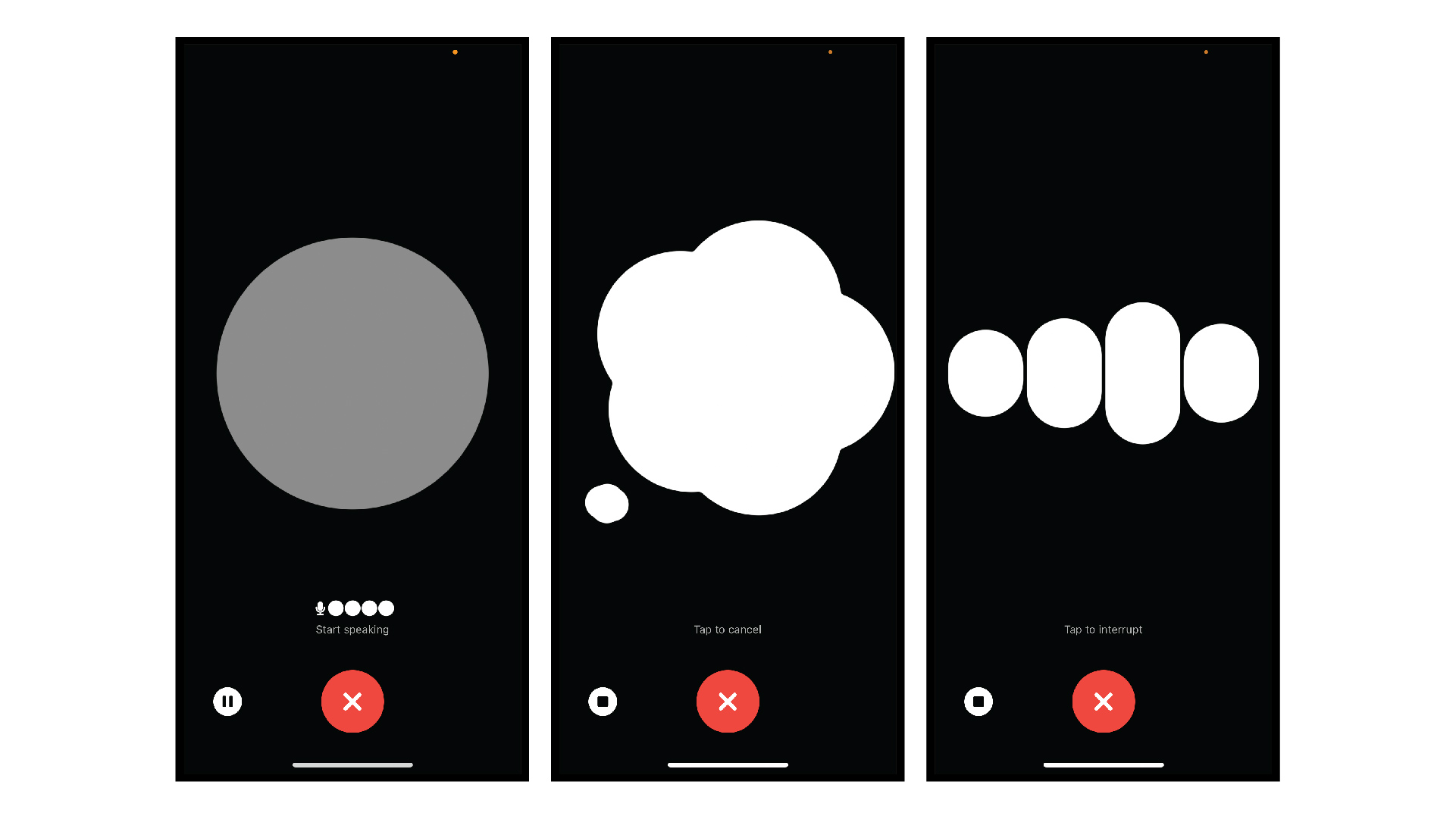 Yet another successful micro-interaction is found in the Voice functionality. This is a new feature that the app very recently rolled out, in which users can directly talk to ChatGPT and get answers spoken to them out loud. When you tap into the feature on the app, you’re greeted with a full-screen UI that visualizes the conversation. The screen changes based on whether ChatGPT is listening, thinking, or speaking, and there’s constant small movements no matter what state it’s in. These movements make it feel like you are actually being listened to.