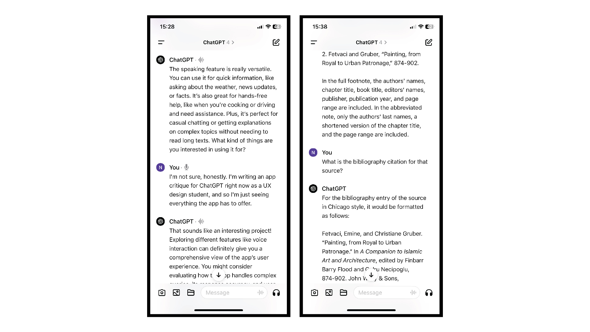 The ChatGPT app allows users to access and chat with OpenAI’s GPT-4 large language model (LLM) from their phone. Just in case you’re not familiar with what it does, the model uses artificial intelligence (AI) to interpret the user’s input and generate conversational responses to almost anything you can think of. Although many of us are very familiar with ChatGPT, which was released to the public on November 30, 2022, some of us (or maybe it was just me) didn’t realize there was an app until recently. The ChatGPT app launched for iOS and Android this past spring (May and July 2023), and has already reached over 110 million installs (Malik, 2023). The app takes an already astounding technology to the next level, as it presents the ability to easily talk with ChatGPT from anywhere at any time on your phone. In this review, I will critique the ChatGPT app’s user experience (UX) design and provide suggestions on how it can be improved.